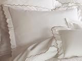 The Calypso bedding collection is a 400-thread-count, 100% Egyptian cotton percale with a decorative scalloped trimmed flange. Available in 4 colors to match any room. Imported from Portugal. By Peacock Alley. Please allow three to four weeks for delivery.
